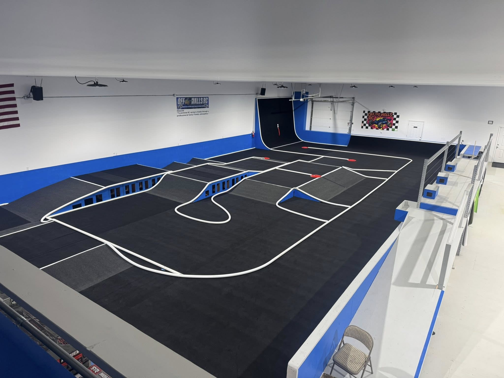 Off the Walls RC is an indoor 1/10 remote control car racing facility on a carpeted offroad surface.